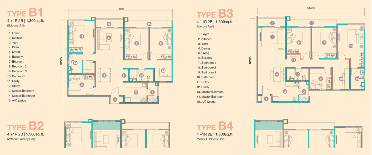 Spacious Family Layout - 1100sf & 1300sf