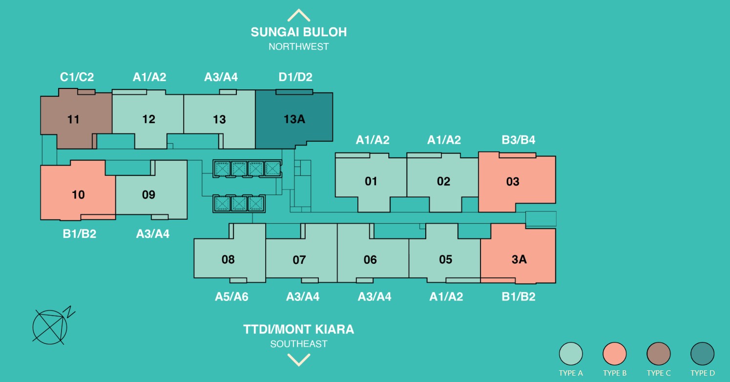 The tower is efficiently served by 7 lifts (1 Bomba lift and 6 passenger lifts). Each floor typically accommodates only 14 units, which are further divided into two distinct wings—creating a more private, low-density living environment for residents.
